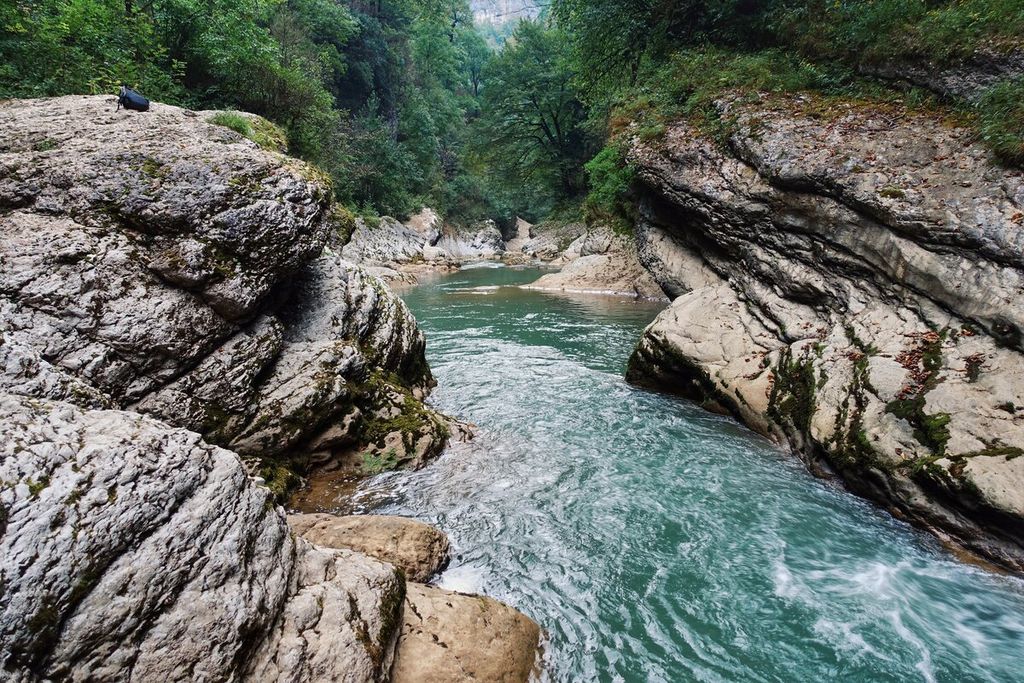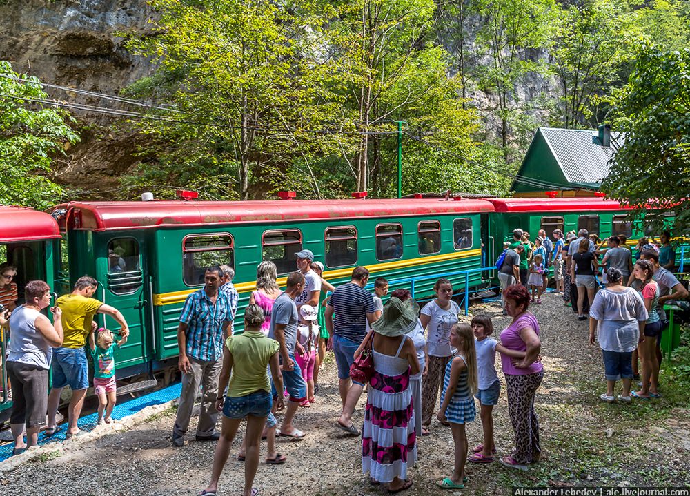 - Экскурсия в Гуамское ущелье на туристическом поезде. Гуамское ущелье является одним из самых сказочных и удивительных мест Адыгеи. Протяженность Гуамского ущелья составляет порядка 4000 метров, его глубина 400 метров, а ширина - в некоторых местах достигает всего лишь 2-х метров.