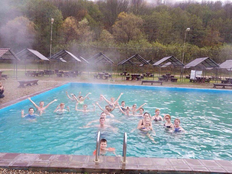 - Посещение термальных бассейнов в пансионате «Большая медведица» или «Н2О» под открытым небом с видом на горы. Вода в бассейне термальная (теплая), полностью природная, из артезианского источника, расположенного на территории пансионата.