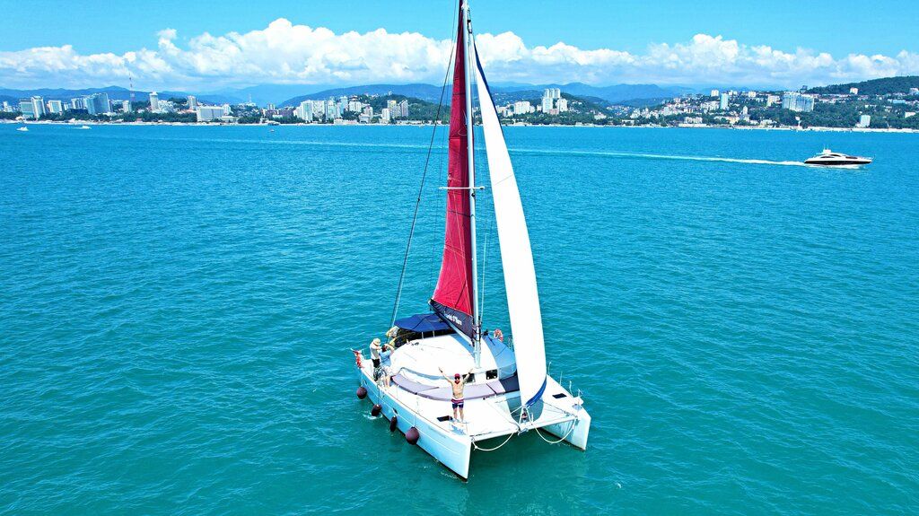 Морская прогулка на моторном катамаране с купанием в районе "пляжа Сосновка".